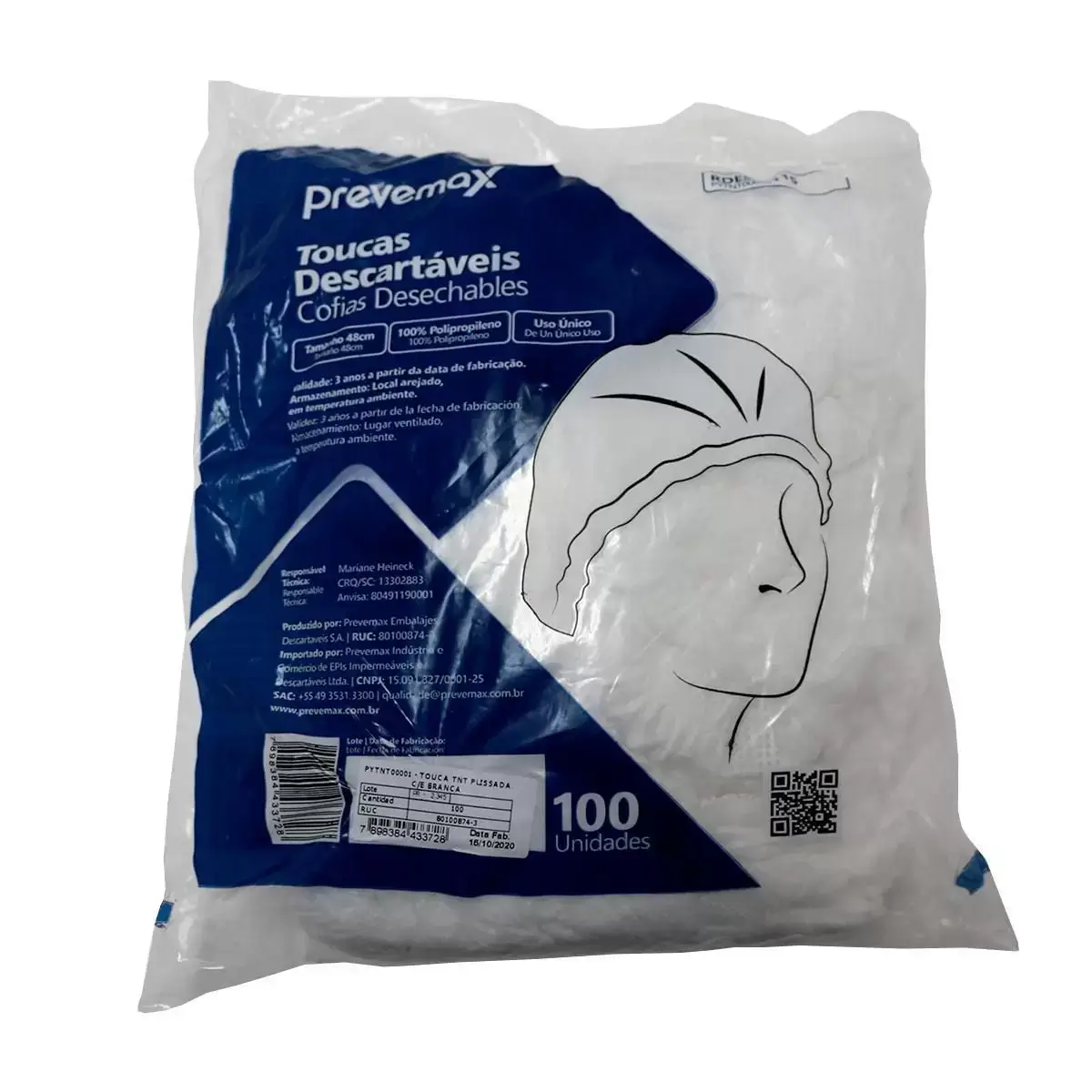 touca fabricada em TNT (tecido não tecido). Fabricação automatizada embalada de fabrica com 100 unidades.