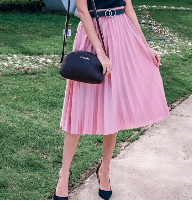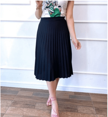 Saia Plissada Basicamente uma saia com sequência de preguinhas. Repare que parece que ela foi dobrada como uma sanfona (esse é o famoso efeito plissado) Confeccionada em helanca super leve com elastano, forrada, possui modelagem com elástico na cintura. Saia Midi Plissada é uma peça super versátil, pode ser combinado com vários estilos.